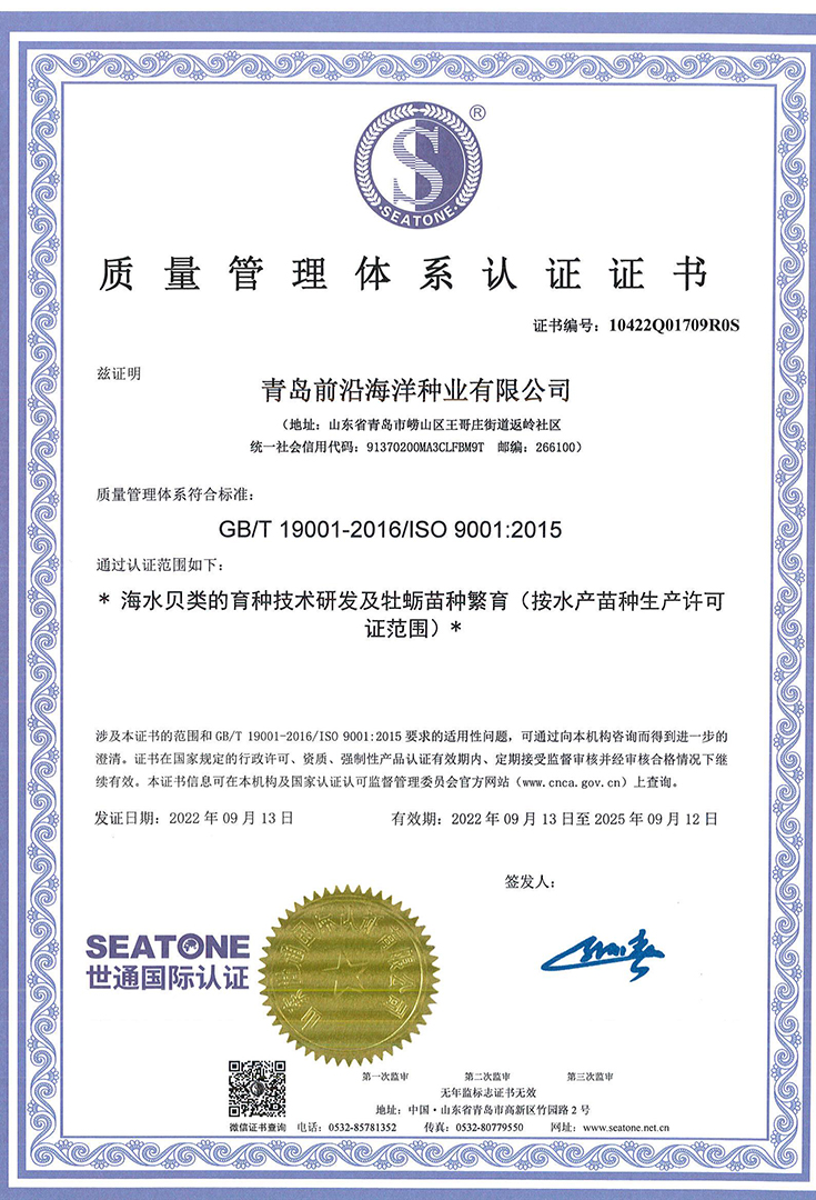 水產(chǎn)新品種-長牡蠣“前沿1號(hào)”