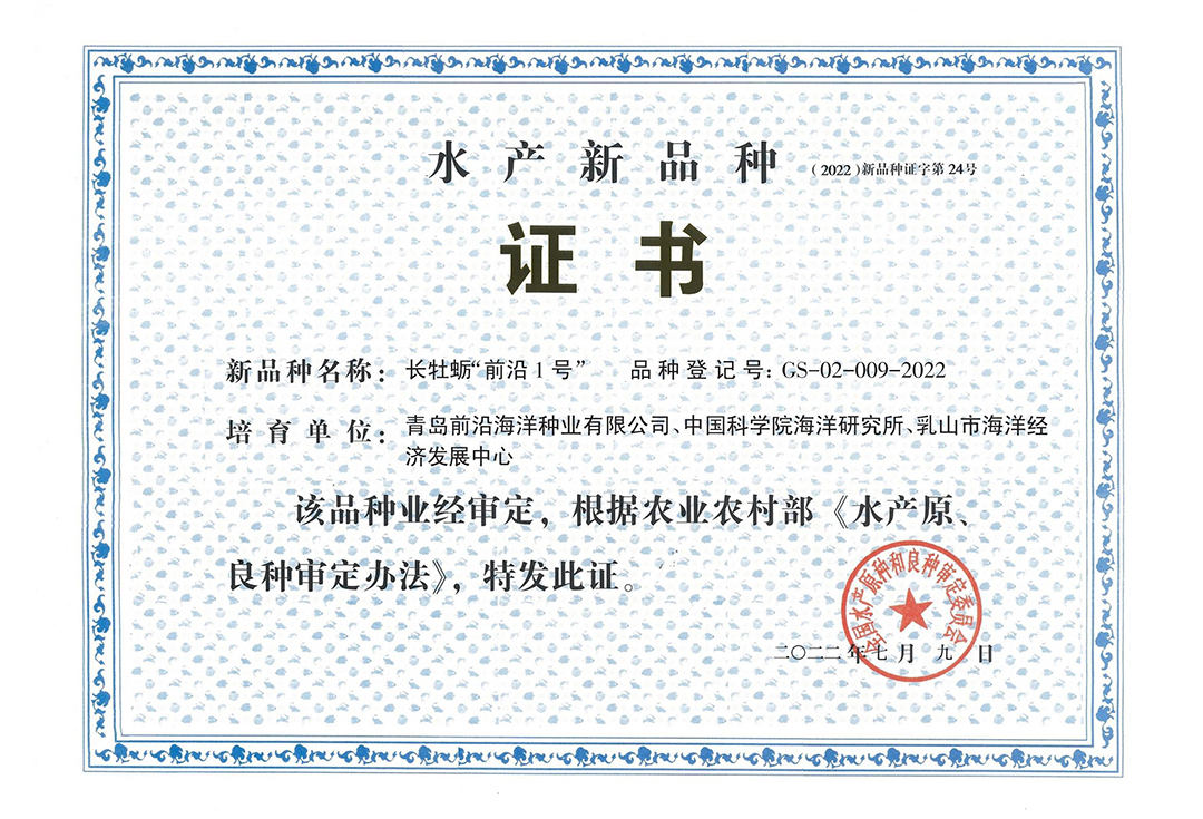 水產(chǎn)新品種-長牡蠣“前沿1號(hào)”